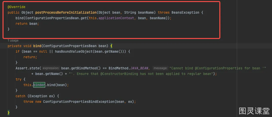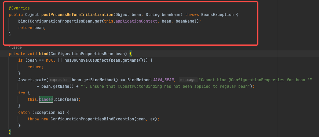BindResult<BeanProperties> bindResult = Binder.get(environment).bind("com.tuling.bean", BeanProperties.class);
